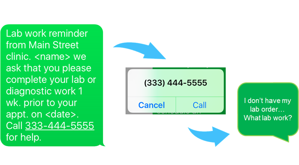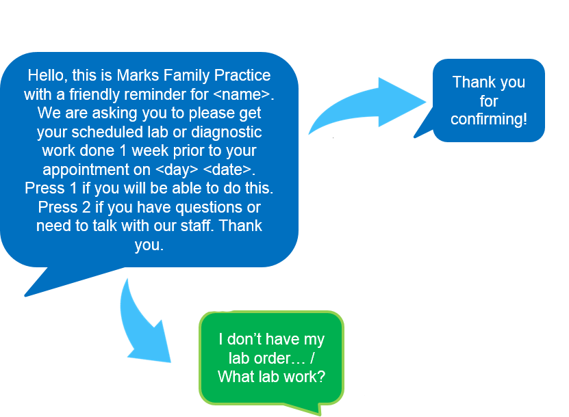 “We used to have a problem with patients forgetting to do their lab work when they showed up for their appointments. With 1-800 Notify, we now send an extra LAB REMINDER message 2 weeks ahead of their regular reminder. Please remember to complete your lab work before your appointment in 2 weeks. The patients like the extra reminder, and we love it because it has cut down our no-show rate dramatically.”